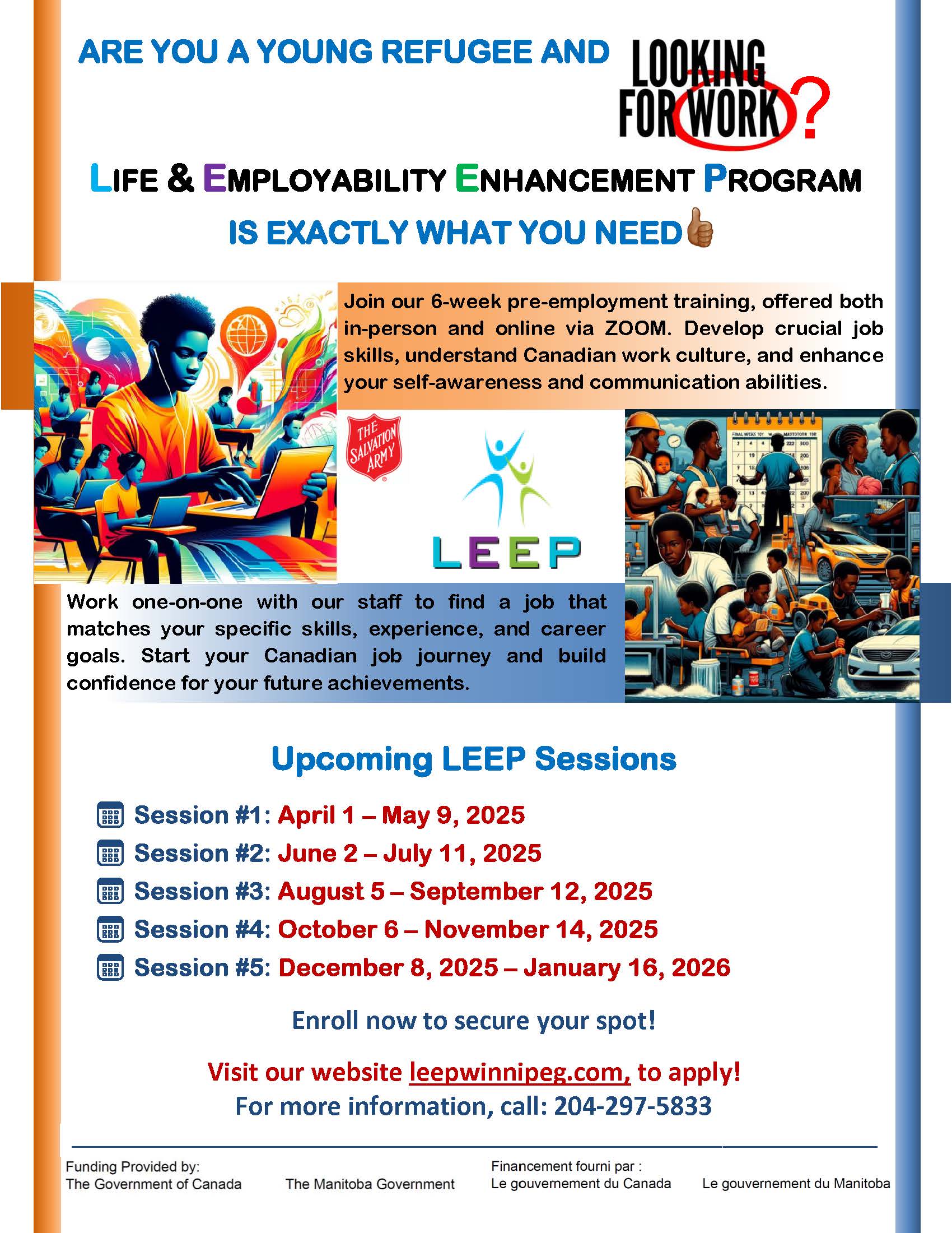 The Life and Employability Enhancement Program (LEEP) in Winnipeg is here to support you on your journey toward a brighter future. We specialize in providing pre-employment training, career services, and employment opportunities tailored to meet the unique needs of newcomers from war-affected countries and refugees.